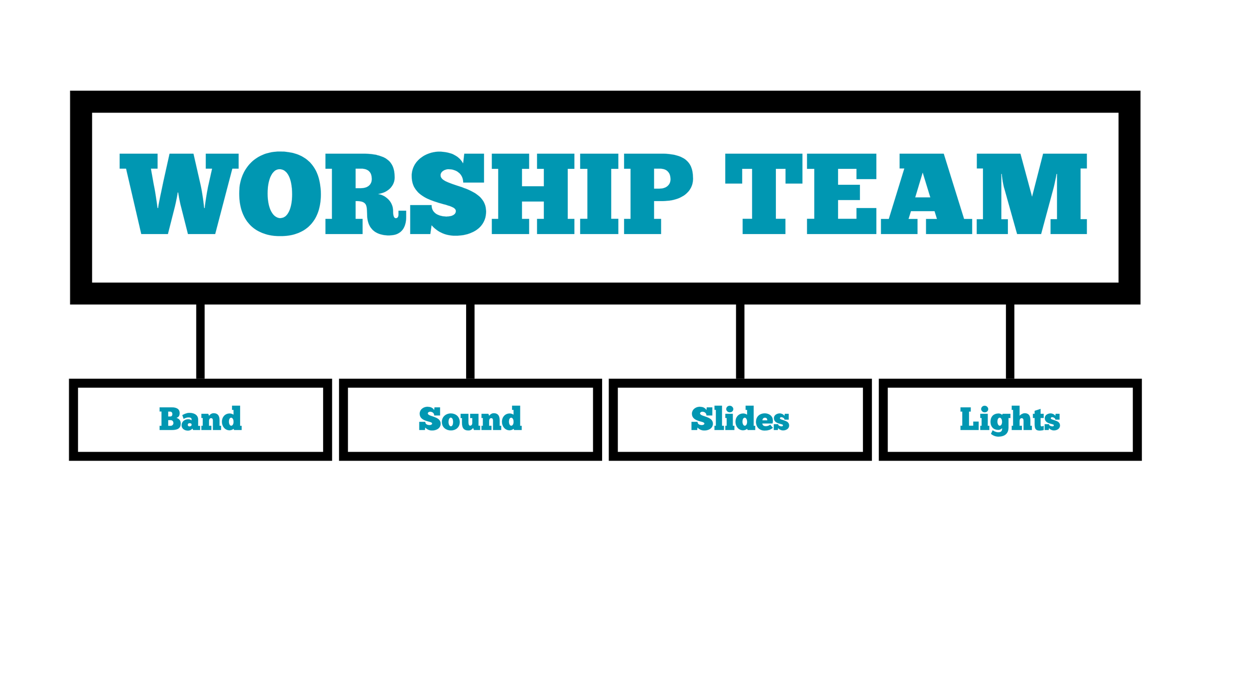 Worship Teams are more than a band of musicians and singers. Worship teams include a band, sound technicians, overhead slide projectionists, and lighting crews.